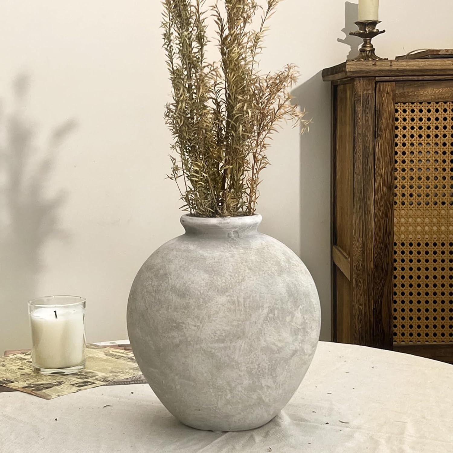 Rustic Ceramic Vase, Farmhouse Flower Vases, Vintage Vases for Home Decor, Handmade Pottery Floor Vase for Centerpieces & Table Decorations, Living Room & Entryway Decor,White Gray